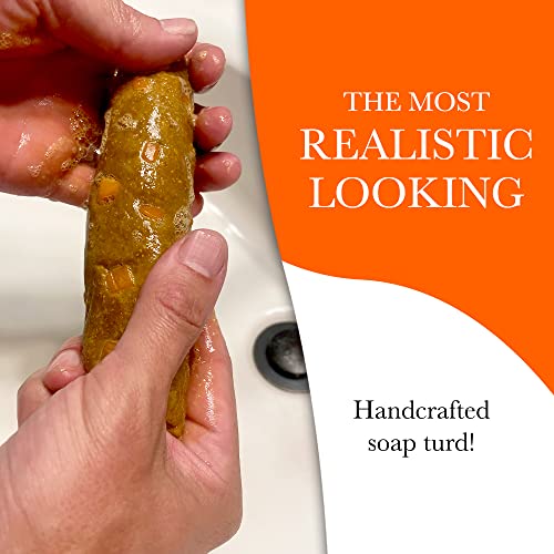 About this item PATENTED SOAP APPEARS TO BE A REAL TURD BUT IS VANILLA SCENTED HANDSOAP – This funny bar soap looks just like a log of crap, but it’s actually hand-crafted, artisanal soap. LUMPY POO-LIKE EXTERIOR WITH MYSTERY CHUNKS – We pulled out all the stops and designed the most realistic fake poop decorative soap ever. HUGE POOP SOAP IS 6 INCHES LONG AND 1 ¾ INCHES WIDE – If you like it thick, this is the poop soap for you. FUNNY POOP GIFT FOR STOCKING STUFFERS, SECRET SANTA, BIRTHDAYS, AND EASTER BASKETS – Howls of laughter are sure to follow opening this gift, no matter what the special occasion may be. Legendary gift giver status achieved. GENDER-NEUTRAL GIFT IDEA FOR WHITE ELEPHANT PARTIES, COSTUME PARTY GRAB BAG PRIZES, YANKEE SWAP, AND DIRTY SANTA – Everybody poops, and nobody grows out of potty humor. This laugh-out-loud gift is perfect for boys, girls, men, and women. It’s an easy unisex gift that will tickle anyone’s funny bone.