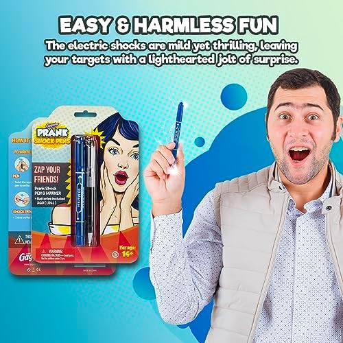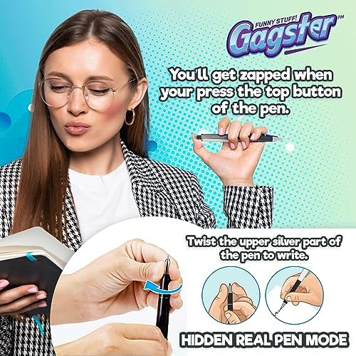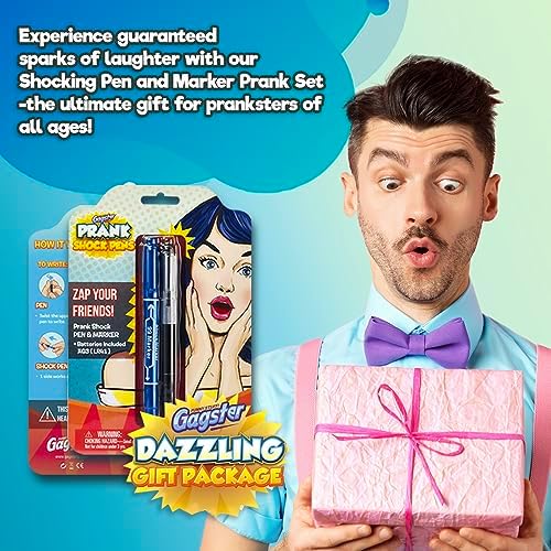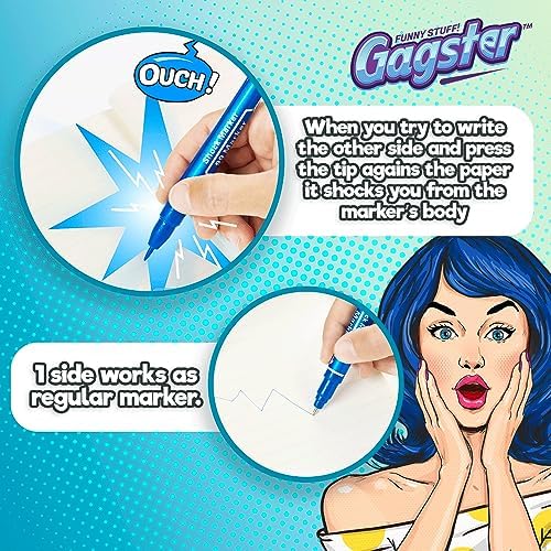 SHOCKING PEN & MARKER SET: Prepare for double the shock and laughter! These Gagster pens and markers not only emit an electric shock when pressed on paper, but they also function as writing instruments. Twist the top to reveal the pen tip and watch as unsuspecting victims get shocked while you enjoy a good laugh. The perfect combination of practical joke and functional writing tool! YOUR PEN/MARKER WILL NEVER DISAPPEAR AGAIN: Tired of people borrowing your pens and never returning them? Gagster has got you covered! With these shocking pen and marker set, your “”borrowers”” will think twice before taking them. As soon as they attempt to use it, they’ll get a surprising jolt of electricity. It’s a hilarious way to teach them a lesson and ensure your writing tools stay where they belong. PRANK YOUR FRIENDS AND FAMILY – BE A PRANKSTER: Unleash your inner trickster with this Gagster funny prank kit. Whether you want to play a prank on your friends, family, or colleagues, these electric shocking pens and markers are the perfect tools. Watch as their faces light up with shock and amusement when they unsuspectingly activate the shocking feature. It’s the ultimate way to become the class clown or the prankster among your peers! A PERFECT GIFT FOR ADULTS & KIDS! : Our Gagster Electric Shock Pen and Marker Prank Set is the perfect choice for adults with a sense of humor. This set includes a black and a blue pen that deliver harmless but surprising electric shocks. It’s a perfect gag gift that never fails to elicit reactions and create unforgettable moments. Get ready to electrify the fun and make lasting memories with this entertaining and unique present. LIFETIME GUARANTEE FOR A RISK-FREE PURCHASE: We stand behind the quality and effectiveness of our Gagster shocking pen and marker set. That’s why we offer a lifetime guarantee. If you’re not completely satisfied with your purchase, simply let us know, and we’ll either replace it or provide a full refund. It’s our commitment to ensuring your satisfaction and making this a risk-free purchase for you. Get ready to shock and amuse with confidence!